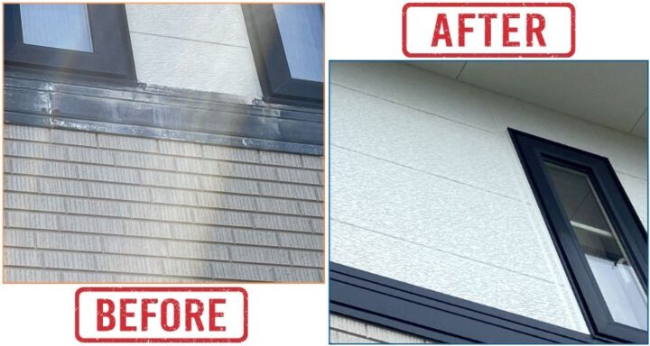 施工にあたっては、表面をきれいに仕上げるだけでなく、下地の状態やコーキングの劣化状況を一つひとつ確認し、雨水の侵入リスクを残さないことを最優先に進めました。また、工事途中でご要望いただいたフードの交換についても、素材や取付方法を確認したうえで対応し、全体の仕上がりや耐久性に影響が出ないよう調整しています。