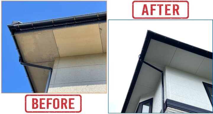 今回の工事は、外壁の色分けによる意匠性の向上と同時に、経年劣化が進んでいた軒天や下地を根本から整えることを目的に、私が責任をもって担当しました。